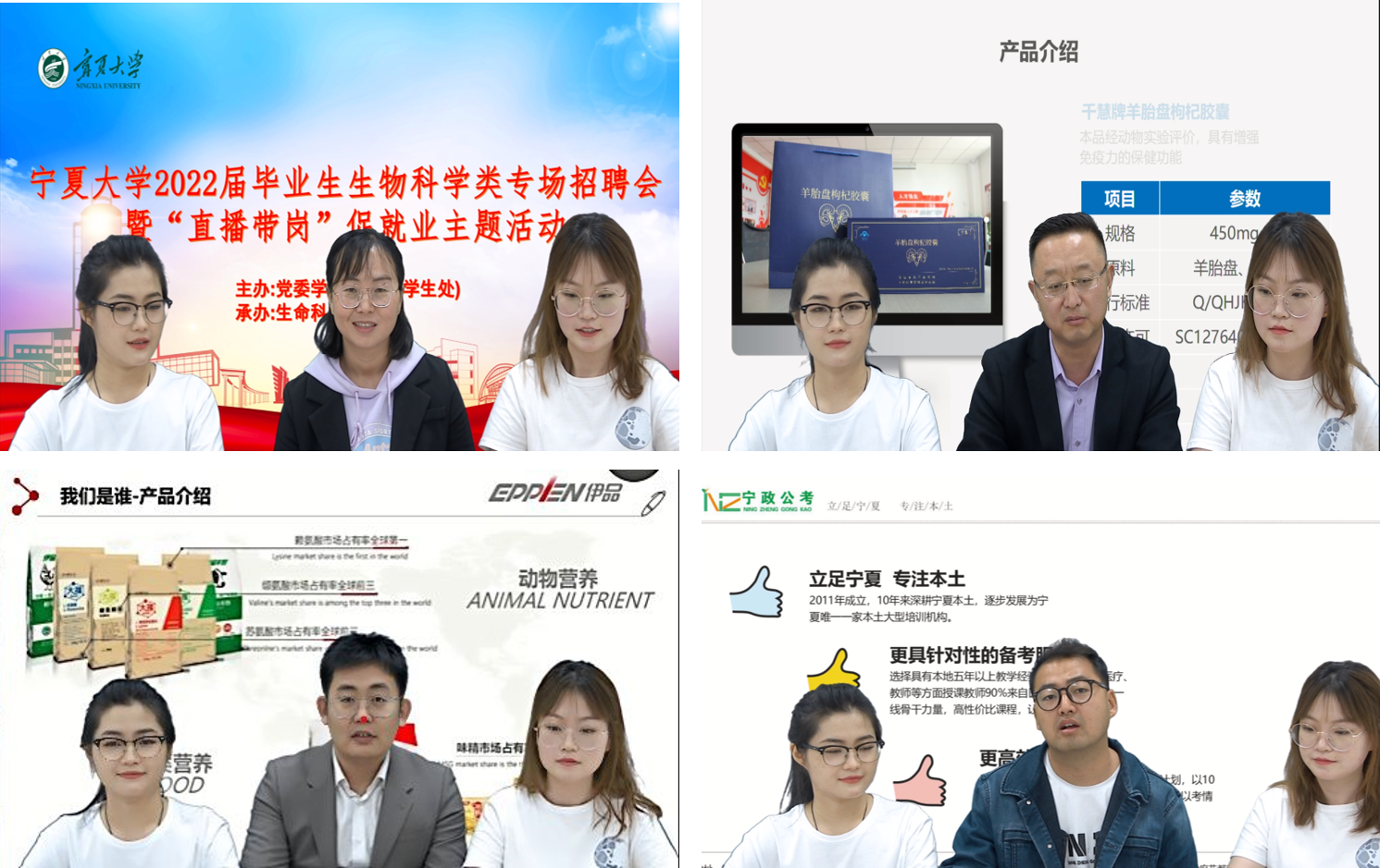 本次线上专场招聘会有北京贝尔生物、北京科途医学、广东东阳光药业、浙江洪晟生物、中航(宁夏)生物、宁夏伊品生物、宁夏泰益欣、宁夏夏进乳业、宁夏塞尚金河、银川伊百盛生物、宁夏伊利乳业、宁夏大北农科技、宁夏夏盛实业、宁政公考等20余家用人单位入驻并做客直播间,共提供就业岗位685个。