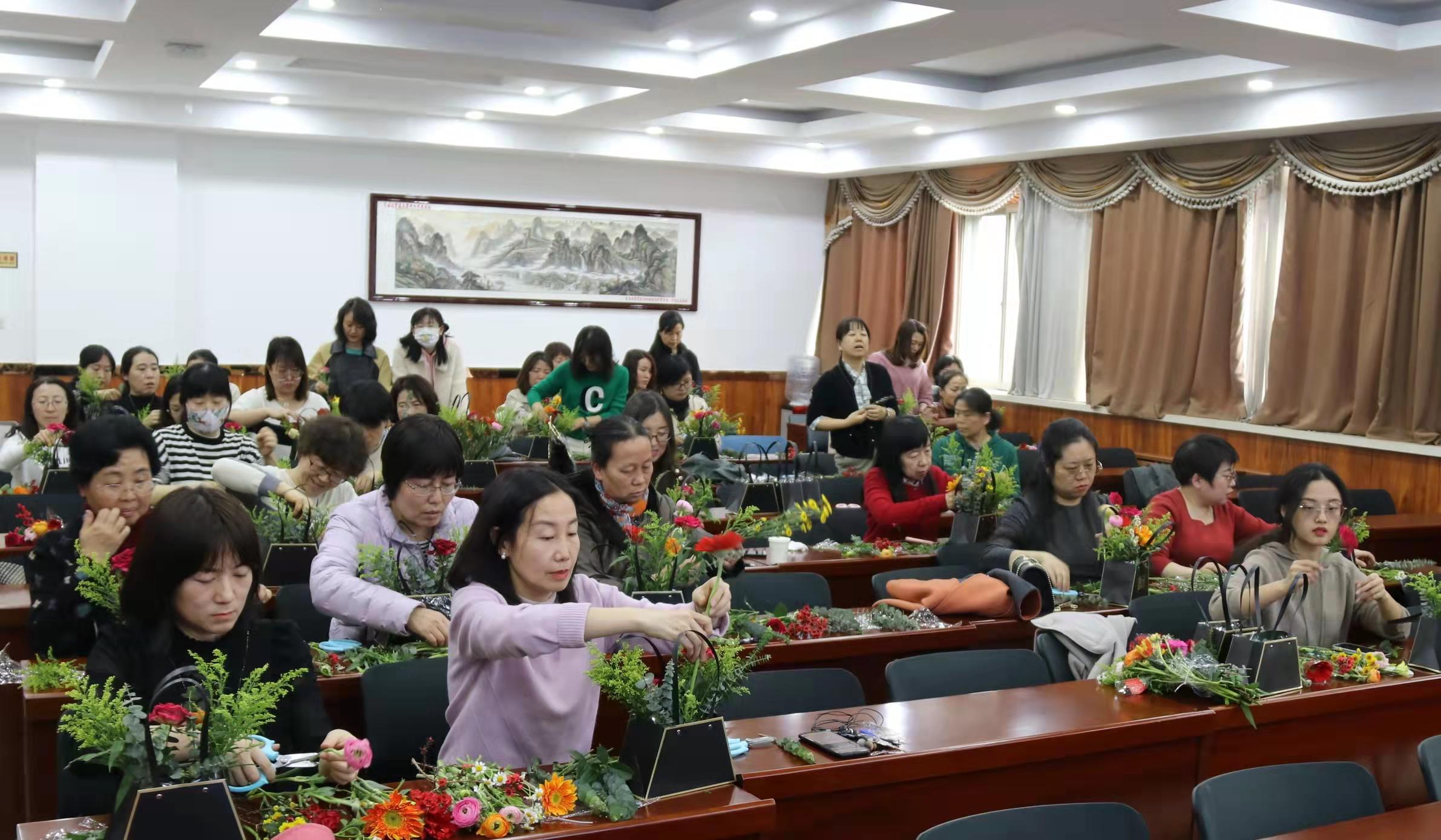 为丰富教职工业余文化生活,展现女教职工蓬勃进取之心,向善向美的精神风貌,3月9日下午,我院于文萃校区知本楼二楼报告厅举办庆祝第112个“三八”国际妇女节主题插花活动,学院党委书记李东宁出席。