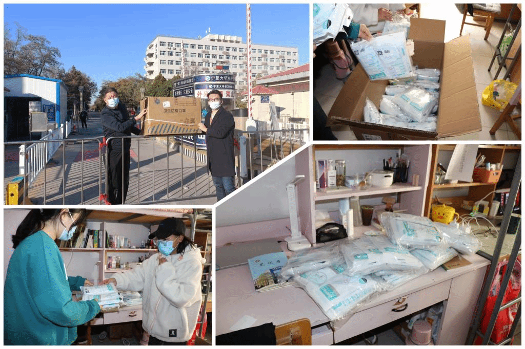 11月8日,薛頔老师自费给学院防疫工作捐赠了近3000只口罩,当这些爱心口罩接力送到学生手中时,同学们深受感动。