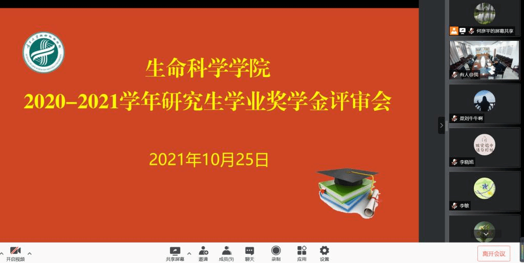 10月25日下午,我院克服学校疫情防控封校带来的不便,封校不停工,线上召开2020-2021学年研究生学业奖学金评审会议。学院研究生学业奖学金评审委员和研究生代表全体参加,会议由院长苏建宇主持。