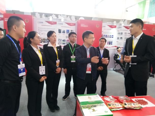 11月1日中午,自治区团委副书记龚雪飞,来到我院参赛项目展区,看望参赛队员,与同学们进行亲切交流并合影留念。