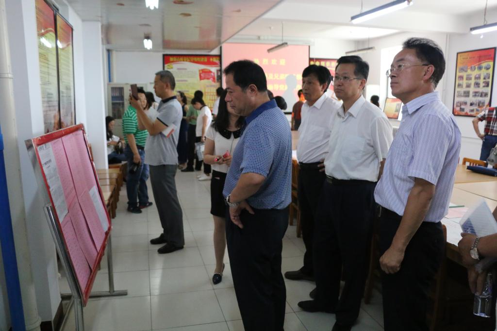 教育厅领导和全区兄弟院校同志观摩了我院党员活动室----生命先锋之家,辅导员杨亚珺从我院党建工作的制度建设、党员发展及考核、党团活动、志愿者服务等方面向考察团领导做了详细的汇报。