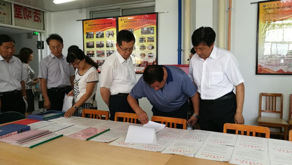 | 自治区教育工委副书记赵剑锋查看我院党建制度 |