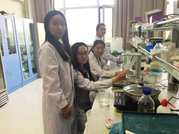 | 学霸在实验室做科研。从左至右依次为:王霏、肖静舒、于静、武珍珍 |