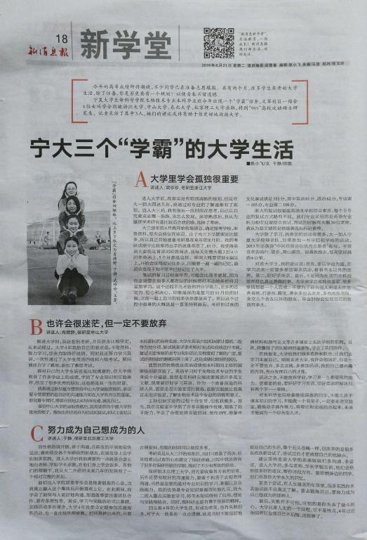 | 2016年6月21日新消息报18版“新学堂”栏目刊登我院2016届本科毕业生学霸宿舍 |