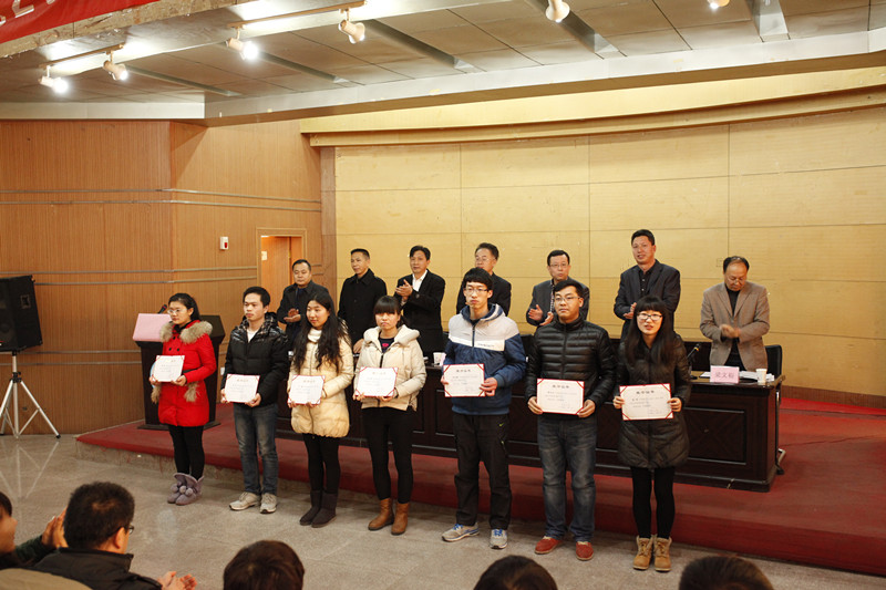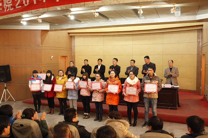 2014年教风学风建设表彰大会。院领导王玉炯,叶志春、何彦平、苏建宇、梁文裕、邓光存及我院全体教师、学生参加了此次大会。大会由院党委书记沈岩东主持。
