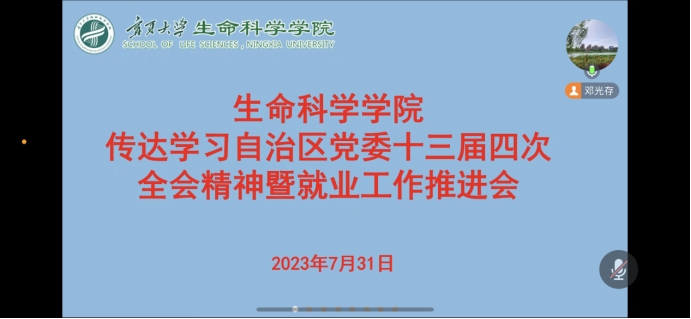 7月31日下午,我院线上召开全院教职工大会,集中传达学习自治区党委十三届四次全会精神,并就暑期安全工作、毕业生就业工作进行了安排部署,学院党总支书记邓光存主持会议。