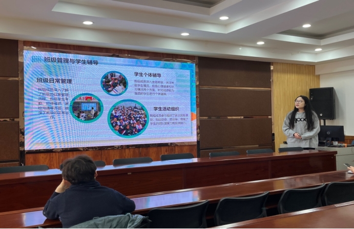 随后,分布在银川市、石嘴山市26所中学的实习小组,对实习工作进行了汇报,他们结合自身实习经历,分享了成长与收获,讲述了对教育事业的热爱和坚守。在一学期的实习中,他们认真听课、备课和上课,积极参加班级管理工作及学校的各项活动,不仅锻炼了教学技能和本领,也对教师职业和教育工作有了更加深刻的认识和体会。