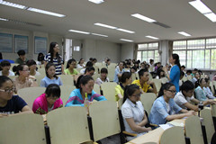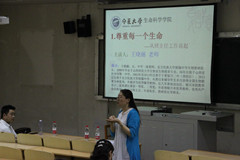 王晓丽老师以《尊重每一个生命》为题,根据自己多年的高中生班主任工作经验及近些年来实习生在从事实习班主任过程一些情况作了讲解,通过视频、案例、提问、探究式等多种方式、多角度对实习时如何对高中学生进行班主任的实习工作。刘金河老师以初中同学为实习对象,从实习班主任工作内容、方法措施、注意事项等三大方面介绍了《如何做好实习班主任工作》。本次讲座对于我院学生将要进行的教育实习帮助非常大,受到学生的热烈欢迎。