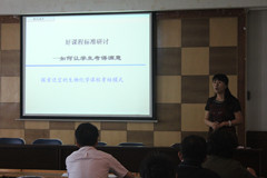 以各基层教学组织为单位,开展了“好课程标准”及“课程考试改革”系列讨论会和座谈会,在广泛讨论和征求意见的基础上,于2015年6月17日召开了以“强化课程建设,规范课堂教学,提升教学质量”为主题的“好课程”建设研讨会,学院全体教职工及学校督导张慧茹教授应邀参加了研讨会。
