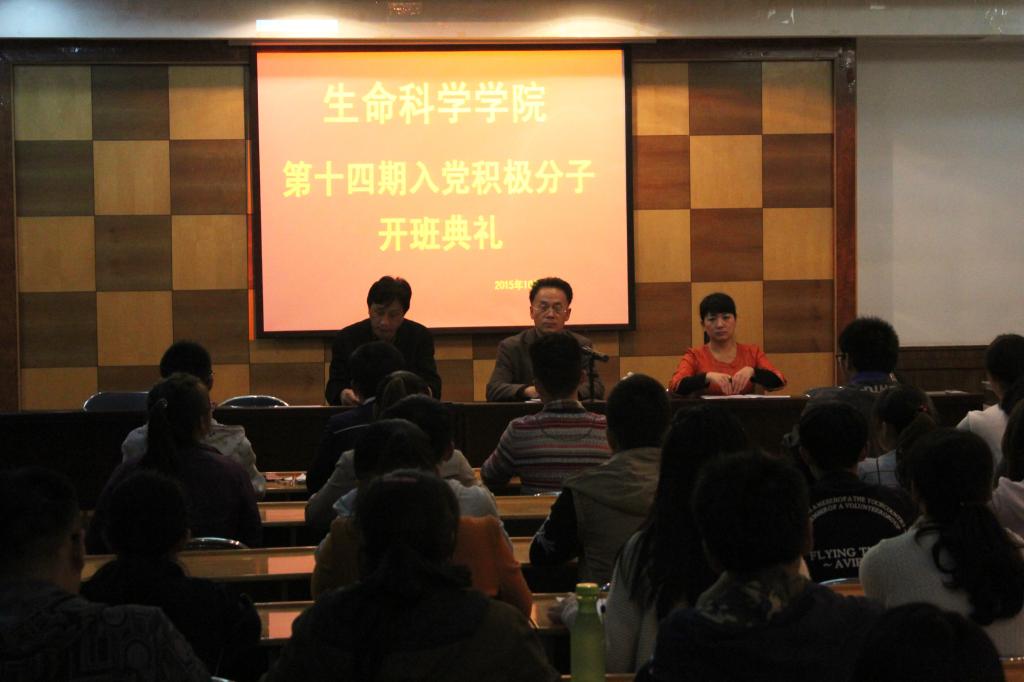 为了加强大学生政治思想教育,做好入党积极分子的培养和教育工作,10月22日晚,我院第十四期入党积极分子培训班开班典礼在学院二楼报告厅隆重举行。院党委书记沈岩东、辅导员杨亚珺出席本次开班仪式,院党委副书记叶志春主持。