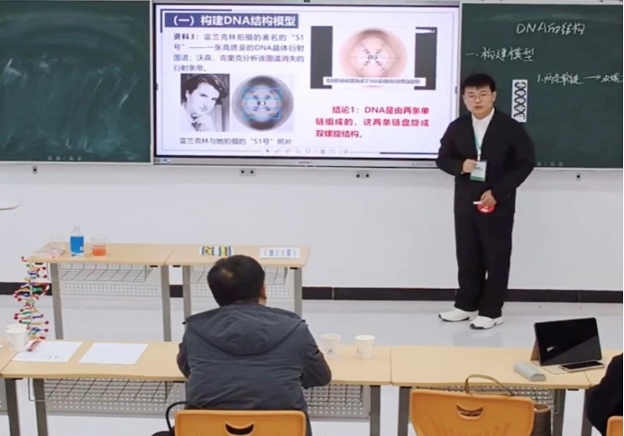 阳震同学以高中生物学必修二教材中“DNA分子的结构”一节为教学内容,凭借扎实的专业知识、先进的新课程理念、自信从容的教态、多元化的教学方法,在激烈的竞争中脱颖而出,体现出我院在师范生培养过程中扎实的工作作风,展现了我院师范生积极向上、追求卓越的良好精神风貌。