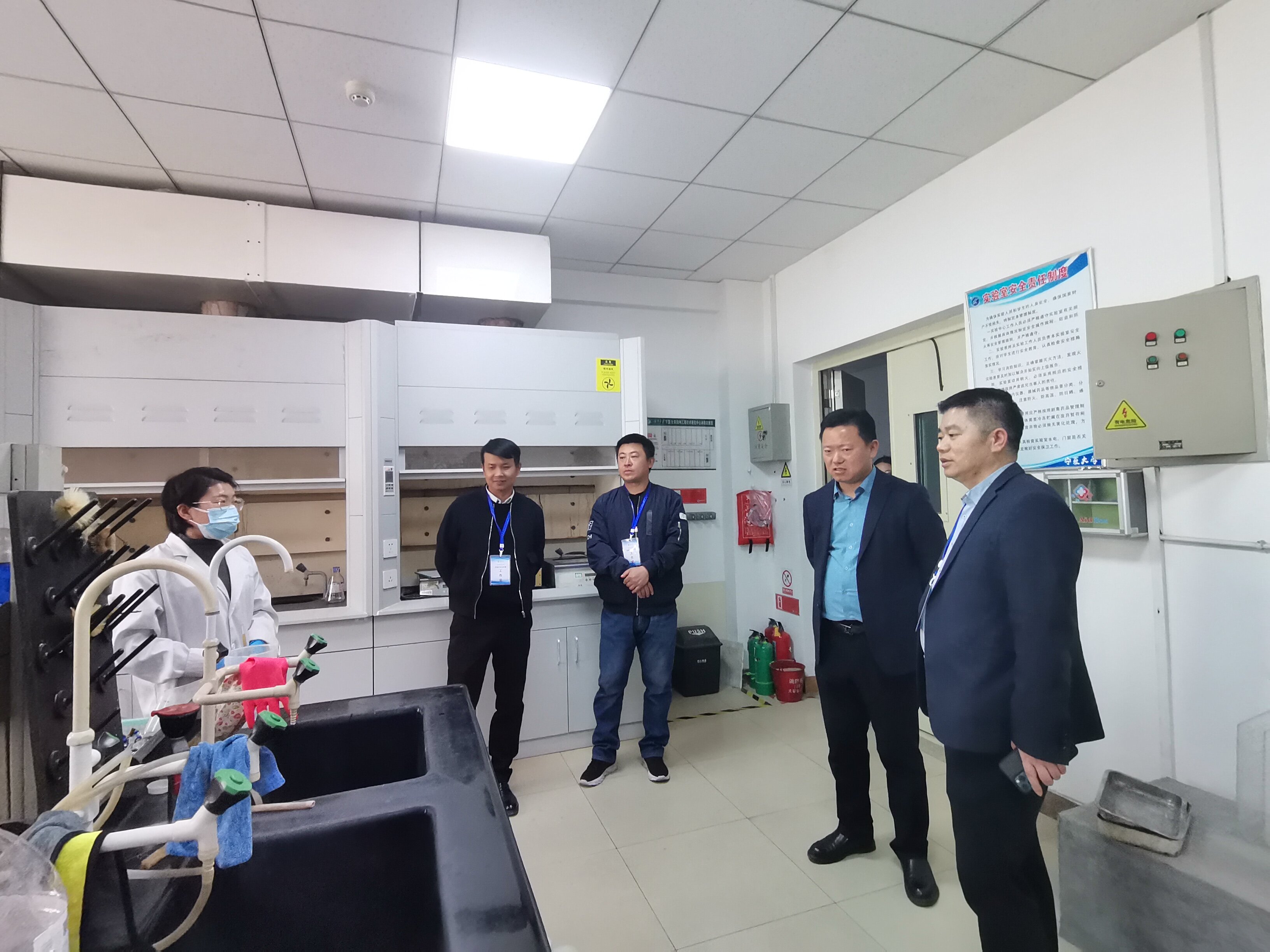 关于实验室安全专项行动“回头看”实施方案》通知要求,切实做好学院实验室安全工作,保障教学、科研等各项工作有序开展,3月4日下午,在副院长徐金瑞的带领下,学院专兼职安全员及4位研究生安全员对知本楼、民志楼和饲料工程中心科研实验室进行了安全检查。检查组对照《高等学校实验室安全检查项目表( 2022 )》中的安全风险和重点任务进行了详细排查,重点检查实验室危化品使用、管理、出入账清单,安全检查记录,应激喷淋装置,以及消防器材的配备、安放位置等,对发现的问题拍照记录,并及时通知实验室负责人,要求能立即整改的则立即整改,不能立即整改的限期整改,对所有隐患整改做到闭环管理。