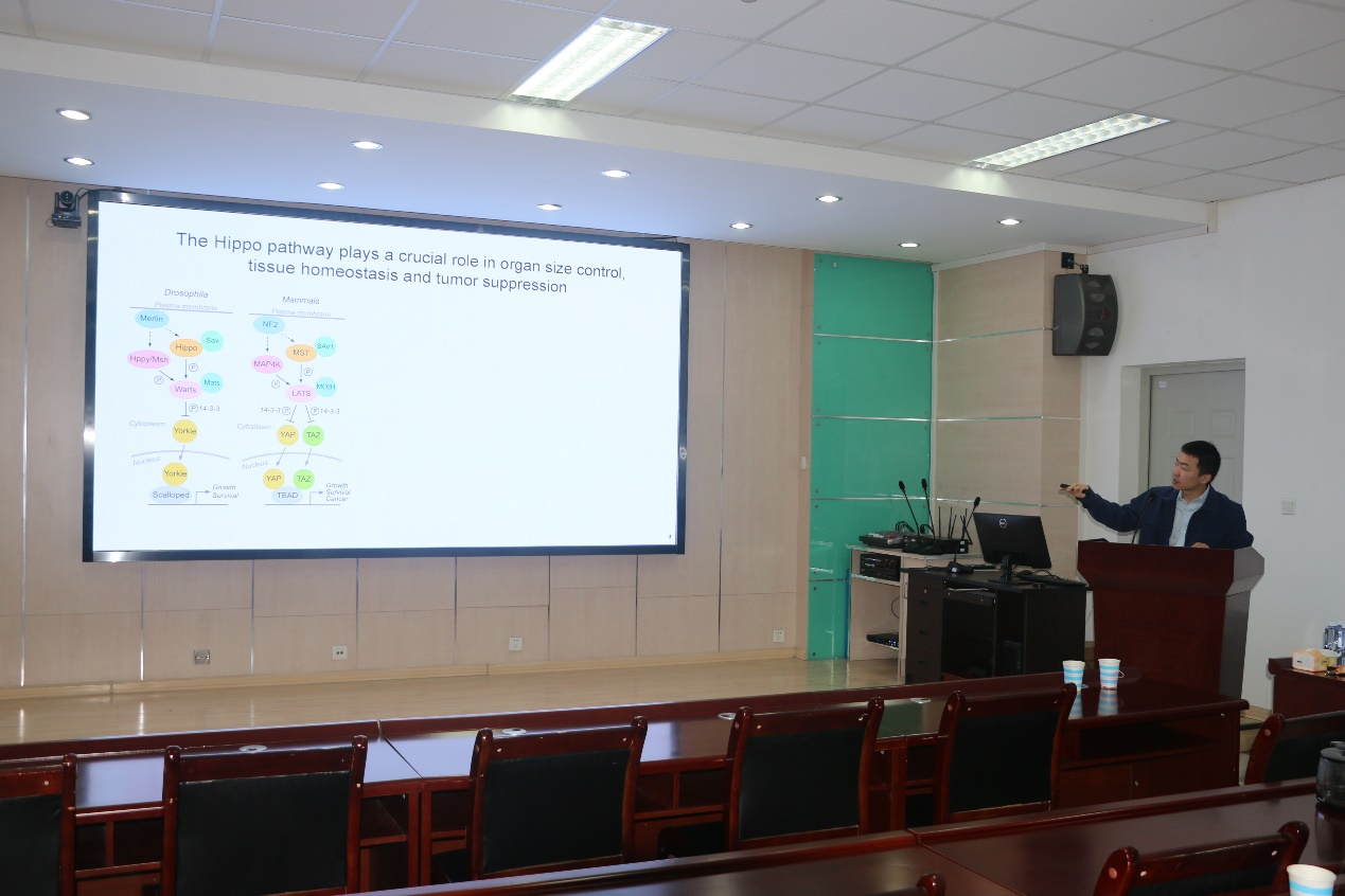 邀请武汉大学泰康医学院(基础医学院)的韩翰教授作题为“Defining novel metabolic cues for the Hippo pathway regulation”的学术报告。报告会由学院副院长李乐主持,学院教师、部分研究生参加了此次报告会。